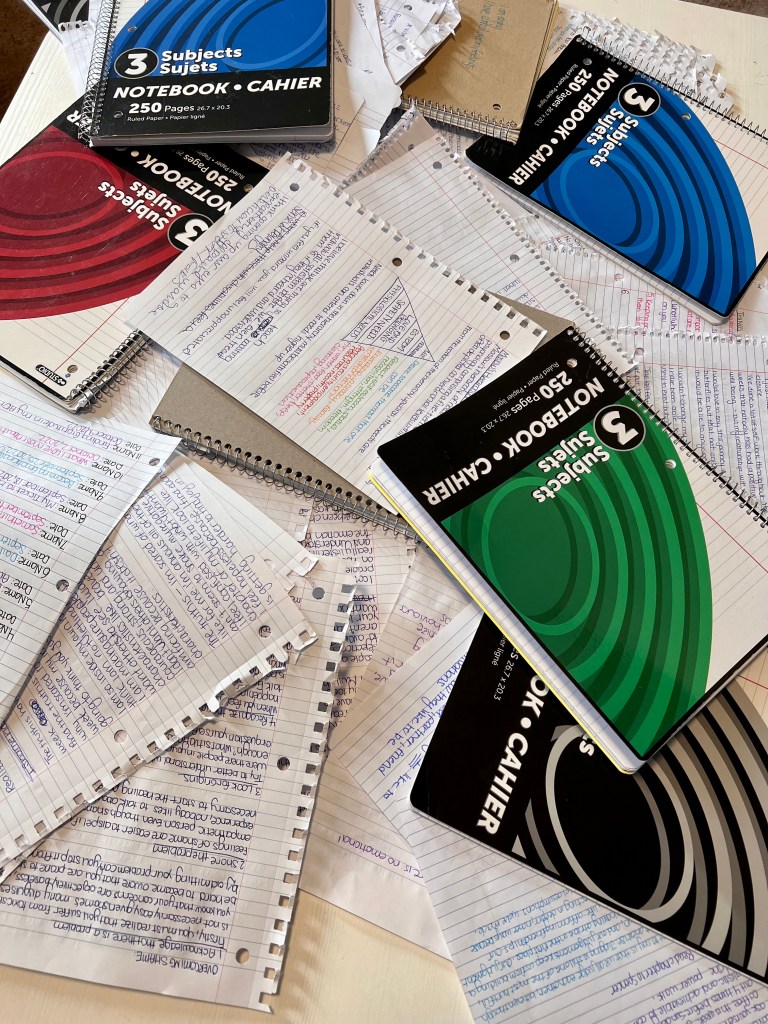I have about 20 different notebooks all full of blog ideas, notes from audiobooks, notes from podcasts, research notes, journal entries, and so much more. There are random papers stuffed inside notebooks or journals. It is very chaotic, but so is my brain 85% of the time. This really represents not only what my notes look like… but what my brain looks like on a daily basis as well.